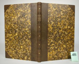 [Réunion de 4 textes en un volume]. PERRET (Emile). Histoire du Pont de La Guillotière et recherches sur les principaux faits qu'y s'y sont passés jusqu'à nos jours. Lyon, Imprimerie d'Aimé Vingtrinier, 1862. Grand in-8 [18 x 27 cm], 47 pages, demi-maroquin brun à petits coins, dos à 5 nerfs, caissons soulignés à froid avec titre et lions héraldiques dorés (reliure signée Bruyère). Edition originale de cette rare plaquette, avec envoi de l'auteur : "A Mr Morel de Voleine, hommage de l'auteur, C Emile Perret". Exemplaire établi par Irénée Morel de Voleine réunissant 4 pièces lyonnaise, et confié par celui-ci au relieur lyonnais Jean-Pierre Bruyère qui l'a signée en queue du dos. [JPB dit Bruyère l'Ainé 1803-1870, alors en fin de carrière]. Sont reliés à la suite du premier texte : 2. DESJARDINS (T.). Notice sur l'Hôtel de Ville de Lyon et sur les restaurations dont il a été l'objet. Lyon, Imprimerie d'Aimé Vingtrinier, 1861. in-8, 44 pages, sur vélin fort. 3. TISSEUR (Clair). Compte rendu des travaux de la société d'architecture de Lyon pendant les années 1860-1861. Lu dans la séance du 6 mars 1861. Lyon, Imprimerie d'Aimé Vingtrinier, 1861. in-8, 15 pages, sur fort vergé de hollande. 4. MULSANT (E.). Notice sur Antoine Lacène. Lyon, F. Dumoulin, 1860. in-8, 22 pages, avec un portrait frontispice du célèbre naturaliste (1769-1859), lithographié par F. Lépagnez.