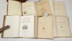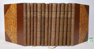 AUDIN (Marius) et DIVERS. La collection des Amis du Vieux Lyon. Lyon, Cumin et Masson, 1917-1920. 14 volumes in-8 [14.5 x 19.5 cm], demi-maroquin lavallière à coins, dos à nerfs, têtes dorés (reliures signées Louis Guétant). Les 14 volumes constituant la rare collection complète, en reliures uniformes et dans une condition parfaite. Tirages limités à 200 exemplaires. 1/ AUDIN (Marius). La Loge du Change, 1917, 166 pages. n°129/150 - reliure non signée 2/ AUDIN (Marius). Nos vieux moulins du Rhône, 1918, 110 pages. n° 90/200 3/ VIAL (Eugène). La Ville de Lyon en vers burlesques 1683, 1918, 178 pages. n° 81/200 4/ FABIA (Philippe). La garnison romaine, 1918, 117 pages. n° 177/200 5/ AUDIN (Marius). Légendes et coutumes du Beaujolais, 1918, n.p. [env. 100 pages]. n° 31/200 6/ VERMOREL (Jean). Quelques petits théâtres lyonnais des XVIIIè et XIXè siècles, 1918, 101 pages. n° 17/200 7/ LEROUDIER (E.). Noëls et chansons en patois lyonnais, 1918, 103 pages. n° 189/200 8/ FOUGERAT (L.). Manask' Légende du Mont d'Or, 1919, 97 pages. n° 126/200 9/ VALLAS (Léon). Lyon au temps jadis. Le théâtre et la Ville 1694-1712, 1919, 124 pages. n° 41/305 10/ AUDIN (Marius). Le Confluent, 1919, 113 pages. n° 136/200 11/ TRICOU (Jean). Le Plâtre Saint Esprit, 1920, 100 pages. n°176/200 12/ FOCILLON (Henri). Le voyage d'Ars, 1920, 110 pages. n° 148/200 13/ GERMAIN de MONTAUZAN (C.). Les premiers évocateurs du Vieux Lyon, 1920, 103 pages. n° 90/200 14/ SACHET (Abbé A.). Les Rôtisseurs de Lyon, 1920, 90 pages. n° 145/200