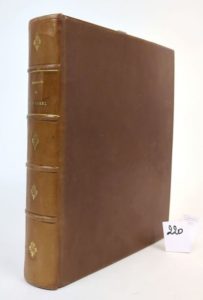 CHASSAING (Augustin) : Mémoires de Jean Burel, bourgeois du Puy, publiés par Augustin Chassaing. Le Puy-en-Velay, Marchessou, 1875. Un volume. 21,5 par 26,5 cm. (4)-XXXVI-584 pages. Plein chagrin fauve moderne, dos 4 nerfs, couvertures conservées, en excellent état. Une tache sans gravité sur la couverture et les 5 premiers feuillets, sinon très bel état intérieur. Edition originale de ces mémoires du temps des guerres de religions. La partie la plus intéressante est celle située entre1562 et 1596, où la ville du Puy eut à faire face à six sièges, et où les habitants, tous catholiques, se déchirèrent entre Royalistes (ou Politiques) et Ligueurs.