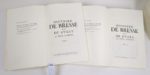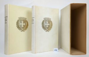 GUICHENON (Samuel) : Histoire de Bresse et de Bugey. Contenant ce qui s'y est passé de mémorable sous les Romains, Roys de Bourgongne & d'Arles (...). Roanne, Horvath, 1976. 2 volumes. 21 par 34 cm. (38)-133-(3)-399-(4) ; (6)-253-(35)-259-(2) pages. Plein vélin, avec les plats décorés des armes de Bourg en Bresse, tête dorée, gardes en soie. Dans un étui bordé. Parfait état de la reliure (petits frottements sur les bords de l'étui) et de l'ouvrage. C'est l'ouvrage le plus important pour l'histoire de la Bresse et pays environnants : il est agrémenté de près de 170 blasons. Réimpression soignée tirée à 300 exemplaires tous numérotés de ce classique. Celui-ci est un des rares en reliure plein vélin, tirage de luxe, numéroté 10, imprimé sur un beau papier vergé.