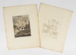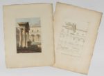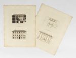 [Charles PERCIER, Pierre FONTAINE, Claude Louis BERNIER, Léon DUFOURNY], Palais, maisons et autres édifices modernes dessinés à Rome ; publiés à Paris, l'an VI de la République française (1798, v. st.), Paris, [Les auteurs], chez Ducamps, de l'imprimerie de Baudoin, [1798-1801]. Exemplaire non relié, in-folio dans une boite toilée (440 X 320 mm) : 1 f. blanc, 7 p., 127 pl. (120 sur papier de Hollande), dont 36 rehaussées au lavis et à l'aquarelle. Nombreux doubles, en version au trait et en couleur, quelques tirages à l'encre sépia prêts à la mise en couleur, 3-32 p. de texte sur papier ordinaire. Plats d'un ancien cartonnage carmin conservés, boite toilée bleu marine. Exemplaire exceptionnel dont plusieurs planches mises en couleur diffèrent de celles des exemplaires connus. A noter que les planches au trait n'ont jamais été brochées et sont telles que sorties de presse, alors que les planches rehaussées portent la marque d'un ancien brochage. On ne peut imaginer le retentissement de cet ouvrage, qui fonda le goût pour la décoration Empire et influencera toute l'Europe sur plusieurs décennies. Réf. : Palais de Rome. Palais, maisons et autres édifices modernes dessinés à Rome de Percier et Fontaine [réédition de l'exemplaire aquarellé de la collection Jacques Doucet], Wavre, Mardaga / INHA, 2008 ; Charles Percier. Architecture and Design in an Age of Revolutions, (dir.) Londres et New Haven, Yale University Press, 2016 Plusieurs de ces planches ont été exposées, lors des expositions « Bibliothèques d'atelier » (INHA-Paris) et « Charles Percier, Architecture and Design » (BGC-New-York, Château de Fontainebleau)