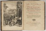 Bernard FOREST DE BÉLIDOR, La science des ingénieurs dans la conduite des travaux de fortification et d'architecture civile. Paris, Claude Jombert, 1729. 1 vol. in-4° : Front. grav. par Rigault, titre, 7f, 80-64-96-104-80-80 p., 4 f., 53 pl. dépl. Très bon état intérieur. Reliure plein-veau brun, dos muet à 5 nerfs et coins restaurés. Première édition de ce traité d'architecture civile et militaire divisé en 6 parties, qui traitent successivement de théories de la mécanique, de maçonnerie, de construction des voûtes et des arches, des propriétés des matériaux (et pour la première fois de la mécanique des sols), de planification et de la construction de bâtiments civils et militaires, des modénatures ainsi que de l'élaboration des devis. Bien qu'écrit au départ pour illustrer le cours d'architecture militaire que Belidor dispensait, dans la droite ligne des travaux de Vauban, on notera que les règles édictées s'appliquent de la même façon aux constructions civiles. Ce livre influença grandement la construction des hôpitaux civils et militaires de Carpentras, Valenciennes et des Invalides. Il connut plusieurs rééditions au cours des XVIIIe et XIXe siècles. Un grand classique de l'ingénierie civile et de la castramétation. On admirera toujours la planche sur laquelle les ingénieurs commandent et les ouvriers travaillent.