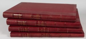 Achille FOULD, Archives de la Commission des Monuments Historiques publiés par ordre de S.E. Fould, Ministre d'Etat. Paris, Gide et J. Baudry, 1855-1872 4 vol. in-plano : [vol. 1 Architecture antique : Bouches du Rhône et Gard. Architecture religieuse. Moyen âge (16 monuments décrits)] 72 pl. dont 5 en couleurs accompagnées de notices ; [vol. 2 Architecture religieuse. Architecture épiscopale et monastique (16 monuments décrits)] 72 pl. dont 1 en couleur accompagnées de notices; [vol. 3 Architecture militaire : Carcassonne et Avignon, Palais des Papes et remparts] 43 pl. accompagnées de notices; [vol. 4 Renaissance, architecture civile : Blois, Orléans, Beaugency] 50 pl. dont 1 en couleur accompagnées de notices. Soit 43 monuments illustrés de 237 pl. dont 7 en couleur. Rares rousseurs. Reliures fin XIXe siècle en demi-maroquin rouge à coins, dos à 6 faux-nerfs, têtes dorées. Excellent exemplaire de ce travail fondateur de la protection des monuments historiques en France ; Après les interventions de Mérimée et Viollet le Duc, il fallut près d'un demi-siècle pour que le système législatif mette en place un cadre à la protection. En parallèle, de nombreux relevés et identifications permirent de reporter leur état à la moitié du XIXe siècle.