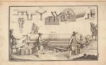 Johann Jacob SCHÜBLER, Sciagraphia Artis Tignariæ, Oder nutzliche Eröffnung zu der sichern, Nuremberg, Johann Trautners,17361 vol. in-4° : 6 f., 148 p., 42 pl. sur 44 (manque les pl. 35 et 36). Cartonnage à la Bradel allemand, vers 1840. Dos et coins restaurés. Plats légèrement frottés. Très bon exemplaire Provenance : ex-libris manuscrit daté de 1841 sur la page de garde. L'oeuvre de Schübler, architecte et surtout théoricien prolifique du baroque allemand, est très importante et détaillée. Il est un des premiers à proposer des détails d'exécution complets de leurs dimensions, ce qui est fort utile pour la restauration. Afin de favoriser la lecture du texte et des planches en parallèle, les planches sont montées sur de très longs onglets ce qui permet une disposition idéale. L'ouvrage proposé traite à la fois de charpente pour les bâtiments (constructions à pans de bois et toitures) et pour le génie civil (voussures de ponts, moyens de levage) ce qui permet à l'auteur de proposer toutes sortes de machines, y compris une déchiqueteuse de tissus destinée à la préparation de la pâte à papier. On remarquera que les engrenages en bois ont sans doute vu leur apogée puis leur rapide déclin, étant donné leur faible précision de fabrication et leur usure rapide.