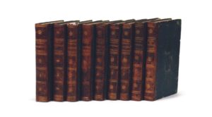 Annales des bâtiments et des arts [puis Annales françaises des arts des sciences et des lettres].Paris, 1817-[1822]9 vol. in-8° : t. 1, titre, 5 p. de prospectus, 552 p., 4 p. de tables ; t. 2, titre, 424 p., 4 p. de tables, 1 f. d'avis ; t. 3, titre, 432 p., 8 pl. (musée des Monuments français) ; t. 4, 400 p. (compris le titre), 4 pl. ; t. 5, 400 p. (compris le titre), 3 p. de tables, 5 pl. ; t. 6, 416 p. (compris le titre), 4 p. de table, 5 pl. ; t. 7, 440 p. (compris le titre et la table), 3 pl. ; t. 8, 432 p., 2 pl. ; t. 9, 440 p., 2 pl. Quelques rousseurs. Reliures homogènes en demi-veau brun. Petits défauts (un mors réparé (t. 1 et t. 7) et un dos en partie restauré au t. 4) Provenance : ex-libris de Paul Lacroix, le fameux « Bibliophile Jacob »Selon le prospectus (présent ici au début du premier volume), ce périodique devait initialement s'intituler Annales des bâtiments et de l'industrie française. Les thèmes annoncés sont les « Monumens, constructions et travaux-publics », les « constructions particulières », les « arts et métiers, agriculture, commerce et objets d'utilité publique », les « nouvelles des sciences et des arts ». Il s'agit de toucher un public d'architectes, mais aussi d'entrepreneurs en abordant tous les aspects, qu'ils soient pratiques ou culturels, du domaine du bâtiment.
