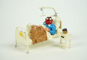 PIXI FRANQUIN Gaston Lagaffe M. De Mesmaeker sur son lit d'hôpital. Ref. 4740. 1996 Complet, dans sa boite d'origine, avec son certificat Tirage limité à 750 ex., celui-ci le 366. Infimes frottements sur le dessus de la boite. Sinon parfait état.