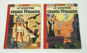 BLAKE et MORTIMER - Le Mystère de la Grande Pyramide Tome 1 : le papyrus de Manéthon, 1954. EO. Tome 2 : la chambre d'Horus, 1955. EO Dos toilé rouge. Coins et coupes légèrement usés, sinon très bon état pour ces deux éditions originales de cette oeuvre célèbre de Edgar P. JACOBS.