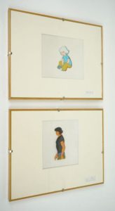 MOEBIUS (Jean GIRAUD) et René LALOUX - Les Maîtres du Temps (1982). Deux celluloïdes tirés de ce film d'animation réalisé en 1982. 14 par 13 cm et 14 par 12 cm. Sous marie-louise, encadrés sous verre. Chaque celluloïd original est signé par MOEBIUS. Parfait état.