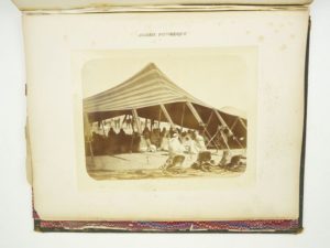[Photographie] : FAMIN (Paul-Marie) : Algérie pittoresque. Un volume. Circa 1890 Cartons 30 sur 38,5 cm montés sur onglets. 25 Photographies de 18 par 25 à 20 par 26 cm selon la photo. 25 photographies albuminées. Recueil en album pleine toile d'éditeur, en très mauvais état. Photographies en bon état (quelques rousseurs sur les encadrements en carton de quelques photos, dépassant sur les photographies dans 4 cas, sans gravité). Paysages, mosquée à Alger, Bois sacré à Blidah, scène de chameliers, rue mauresque à Alger, vue de Constantine L'atelier de Paul-Marie JAMIN, installé 8 rue Bab-Azoun à Alger, reçue la médaille d'or de la Société Française de photographie en 1889.