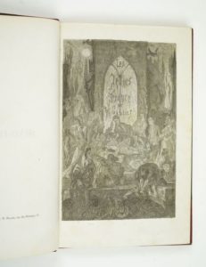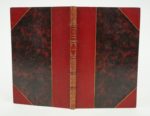 GAUTIER (Théophile) : Les Jeunes-France, romans goguenards. Sous la table - Onuphrius - Daniel Jovard-Celle-ci et celle-la - Elias Wildmanstadius - Le Bol de punch. Bruxelles, chez tous les libraires, 1867. Un volume. 11,5 par 19 cm. Faux-titre-frontispice-titre-XVIII-(2)-215 pages. Demi-maroquin rouge à cois d'époque, dos 5 nerfs, caissons très élégamment ornés, tête dorée. Reliure en très bon état, signée GUZIN. Intérieur du livre en parfait état. Sans doute une édition clandestine faite par Poulet-Malassis, à la suite de celle de 1866. Avec le magnifique frontispice de Félicien ROPS, qu'il faut prendre le temps de détailler pour en voir toutes les subtilités