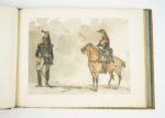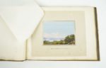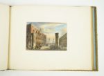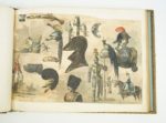 [Carnet de dessins] Un ensemble factice de dessins, lavis, aquarelles, gravures rehaussées, et même photographies. Un album de 26,5 par 20,5 cm. Certains dessins sont datés de 1898. Dans une reliure en mauvais état, les illustrations sont, elles, en parfait état. En particulier, remarquables illustrations militaires, de très jolies vues coloriées de venise, etc. 48 illustrations au total, pour un ensemble unique