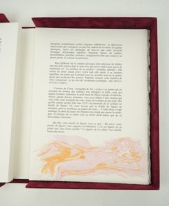 COLETTE : Belles saisons. Promenades au milieu des fleurs, de la neige, des animaux, au travers des campagnes et des villes. Lithographies originales de Georges YOLDJOGLOU. Bièvres, Pierre et Philippe de Tartas, 1996. Un volume. Emboitage : 28 par 38 cm. 95 pages. 7 lithographies originales en couleurs sur double page, avec la couverture (complet). En feuilles, sous couverture illustrée, dans un emboitage façon velours où le premier plat incorpore un plexiglass laissant voir l'aquarelle gaufrée originale servant de chemise à cette édition. Très légers frottements sur la boite, seul défaut mentionnable. Exemplaire vélin (seul papier), un des 140 exemplaires avec les 7 lithographies (N°123) signés par l'éditeur et l'illustrateur. Tirage limité à 200 ex. Nombreuses illustrations dans le texte. Très bel état de l'exemplaire. Une illustration pleine de vie pour ce texte dédié à la nature.
