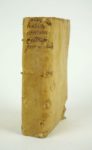 EUTROPE : Eutropii V. C. Historiae Romanae breviarium, Libris X res ab urbe condita usque ad annum eiusdem MCIX mirabili & compendio & ordine complectens (). Basilae, per Joannis Oporinum, 1561. (8)-180-(41) pages. Relié avec : GLAREAN (Henri) : Henrici GLAREANI in Eutropii historiam annotationes. Basilae, ex officina Joannis Oporini, 1559. 327-(19) pages. Deux ouvrages reliés en un volume. Plein vélin d'époque, titre manuscrit au dos. Lacets absents, manque de cuir sur le 1er plat et sur deux coupes, sinon bon état. Bon état intérieur, malgré une mouillure claire sur l'ensemble de l'ouvrage sur le haut des pages (sans gravité). L'oeuvre de l'historien romain Eutrope, du 4ème siècle, s'étend de la fondation de Rome jusqu'à la fin du règne de l'Empereur Joviens. Henrici Glareanus de son vrai nom Heinrich Loris est parfois latinisé en Hendricus Loriti (1488-1563). Henri Glarean fait partie des principaux commentateurs de la tradition humaniste. Célèbre pour ses écrits sur la théorie de la musique, il fait ici un commentaire érudit sur l'histoire romaine d'Eutrope. L'éditeur Jean OPORIN, grand humaniste lui aussi, fut imprimeur, et publia la 1ère édition de l'anatomie de Vésale, et les livres de POSTEL et Sébastien CASTELLION. Deux grands textes du 16ème, rares, édités du vivant de Glarean, et publiés à Bâle chez un imprimeur prestigieux.