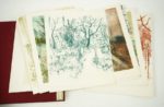 [COLLECTIF] Poèmes des Quatre Saisons. Lithographies originales de Bernard GANTNER. Paris, Les Heures Claires, 1974. Un volume. 28 par 38 cm. 84 pages plus une chemise contenant la suite. En feuilles, sous couverture illustrée rempliée, avec chemise et étui en percaline grenat de l'éditeur. Très bon état de l'ouvrage (légères décharges des illustrations dans le texte). 1 des 50 exemplaires sur grand Vélin d'Arches, avec une suite des 21 illustrations en couleurs (N°75). Recueil de poèmes de Ronsard, Nerval, Musset, Gautier, Anna de Noailles, Samain, Apollinaire, Rimbaud, Verlaine, Baudelaire, etc. Les 21 lithographies originales de Bernard Gantner sont remarquables, entre autres par sa représentations des arbres au fil des saisons.