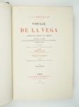 NORDENSKIÖLD (Adolf-Erik) : Voyage de la Vega autour de l'Asie et de l'Europe. Accompagné d'un résumé des voyages précédemment effectués le long des côtes septentrionales de l'ancien continent. Ouvrage traduit du suédois avec l'autorisation de l'auteur par MM. Charles Rabot et Charles Lallemand contenant 293 gravures sur bois, 3 gravures sur acier et 18 cartes. Paris, Hachette et Cie, 1883-1884. 2 volumes. 19 par 27,5 cm. (6)-IV-481-(2) pages + 2 portraits h.t. + 11 cartes dépliantes (dont 4 en couleurs) et 1 portrait-(4)-478-(1) pages + 1 carte dépliante h.t. Demi-chagrin chocolat de l'époque, à coins, dos à nerfs ornés, têtes dorées. Reliure signée Magnier. Très bon état de la reliure. Très bon état intérieur (quelques rousseurs sur les tranches, sans gravité). Illustrations in-texte, dont 55 planches et 3 illustrations à pleine page. Edition originale en français. "En 1878, il quitta Göteborg, à bord de la Vega et longeant la côte septentrionale de l'Eurasie, atteignit le détroit de Bering. Il réalisa ainsi la première traversée du passage du Nord-Est. Il revint en Europe par le Japon et le canal de Suez." (Encyclopédie Larousse).