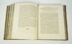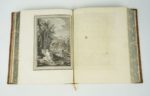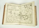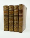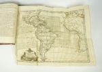 [RAYNAL (Abbé Thomas-Guillaume-François)] : Histoire philosophique et politique des établissemens & du commerce des Européens dans les deux Indes. Genève, Chez les Libraires Associés, 1775. 3 volumes. 19 par 24,5 cm. 1 portrait-(4)-II-IV-pp. III-(1)-pp. III à VIII-719 pp. + 2 pl. h.t. + 1 carte dépl. h.t. ; (4)-VIII-662 pp. + 2 pl. h.t. + 2 cartes dépl. h.t. et (4)-VIII-658 pp. + 3 pl. h.t. + 1 carte dépl. h.t. . Plein veau raciné d'époque, dos 5 nerfs, caissons ornés, pièces de titre havane, tranches jaspées, encadrement des plats par un double filets, filet sur coupe. Très bon état de la reliure. Rares rousseurs, quelques pages légèrement roussies, sinon très bon état du texte. On joint : Atlas de toutes les parties connues du globe terrestre, dressé pour l'Histoire philosophique et politique des établissemens et du commerce des Européens dans les deux Indes. S.l.n.d.. Un volume. 20 par 25 cm. (4)-28 pp. + 50 pl. h.t. sur double page (pl. 1 à 49 avec une pl. 17 bis. La 1ère pl. est dépl. sur double page) + 23 tableaux h.t. (dont 12 dépl. sur double page). Plein veau d'époque, dos 5 nerfs, caissons orné, plats encadrés d'un triple filet noir, pièces de titre rouges. Très bon état de la reliure (petite tache discrète sur le 1er plat). Mouillure claire en marge des pages (sans gravité). Rares rousseurs. Cet atlas est dans une reliure différente aux trois volumes de texte. 2e édition (E.O. : 1770). Sabin, 6808 ; Fa, Bibliographie des ouvrages français relatifs aux Etats-Unis, p. 46 ; Feugère, Bibliographie critique de l'abbé Raynal, n° 40. Cette édition parut sans atlas. On joint à celle-ci un magnifique exemplaire de l'atlas avec 23 tableaux et 50 cartes dressées par Bonne, ingénieur géographe. "On a fait beaucoup de réclame en faveur de l'édition in-4 de 1780, qu'on déclarait devoir surpasser toutes les précédentes en magnificence typographique. C'est faux : les caractères de celle-ci sont plus nets et plus beaux ; les estampes plus nombreuses et plus soignées comme exécution, de même que les vignettes et les fleurons [...]. Mais ce qui en fait surtout le prix, c'est que celle de 1775 contient des passages du texte primitif, modifié en 1774, ou plutôt quelques-uns de ces passages, car elle est loin de constituer une édition critique." (Feugère). A partir de 1780, le texte sera enrichi par DIDEROT, pour en accentuer les arguments anti-esclavagistes. Fa, quant à lui, indique l'importance du texte pour l'histoire des Etats-Unis : "C'est donc à tout point de vue par son genre, son influence et son retentissement, le texte capital sur les Etats-Unis vers 1770. Un exemplaire très enviable de ce classique.