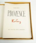GIONO (Jean) : Provence. KISLING. Aux dépens d'un amateur (Bernard KLEIN). Paris, 1954. Un volume. 28,5 par 38,5 cm. (6)-129 pages. 12 hors-textes en couleurs de Moïse KISLING (complet). Broché, en feuilles, sous couverture illustrée, sous emboitage d'éditeur en pleine percaline beige, imprimée KISLING sur le plat. Exemplaire en très bel état. 13 compositions hors texte en couleurs (dont la couverture) et 12 en noir dans le texte. Tirage à 280 exemplaires, celui-ci l'un des 175 sur vélin d'Arches (n°111). Un des classiques de GIONO, magnifiquement illustré par KISLING. Un livre recherché.