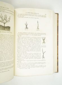 PORTES (Ludovic) et RUYSSEN (F.) : Traité de la vigne et de ses produits comprenant : l'histoire de la vigne et du vin dans tous les temps et dans tous les pays ; l'étude botanique et pratique des différents cépages ; les facteurs du vin ; le vin au point de vue chimique ; ses altérations ; ses falsifications et la manière de les reconnaître ; les eaux-de-vie ; les vinaigres ; etc.. Les ennemis de la vigne et les moyens de les combattre ; la viticulture pratique ; etc.. Précédé d'une préface de M. A. Chatin. Paris, Octave Doin, 1886-1889. 3 volumes. 15,5 par 24 cm. (4)-XII-701 pp. + 1 f. d'errata ; (4)-647-(1) pp. et (4)-891 pages. Demi-maroquin à petits grains havane moderne, dos 5 nerfs, couvertures conservées. Excellent état de la reliure. Quelques très rares rousseurs claires, sinon très bon état de l'intérieur de l'ouvrage. Edition originale. 585 illustrations in-texte. Chwartz P : 10 ; Simon, B.V. : 24 ; le N.U.C. : -NP 498683- n'en localise que 3 ex. (DNAL ; CU ; GU). Le meilleur traité encyclopédique publié au XIXe siècle sur la vigne et ses produits : vin, vinaigres, eaux-de-vie de vin. Il est dû à la collaboration de Ludovic Portes, chimiste expert de la Chambre syndicale du commerce des vins en gros de Paris, membre de la Société botanique de France et de F. Ruyssen, chroniqueur scientifique, propriétaire viticulteur. Le tome I commence par une importante histoire mondiale de la vigne (250 pp.), suivie d'une ampélographie générale (200 pp.), comportant une table des différents cépages, ainsi que de leurs synonymes, décrits dans l'ouvrage. Il se termine par une étude sur les "facteurs de la vigne" : climat, cépages, terrains, engrais et exposition (200 pp.). Le tome deuxième est entièrement consacré à l'étude des produits de la vigne : vin, vinaigres, eaux-de-vie. La vinification y occupe à elle seule les ¾ du volume, avec des chapitres spéciaux consacrés au matériel vinaire, aux maladies du vin et à leurs traitements. Le volume se termine par une étude exhaustive sur la préparation des vinaigres et des eaux-de-vie. La première partie du tome III traite de la viticulture pratique : plantation, taille, soins culturaux annuels. La seconde et dernière partie est consacrée à la pathologie de la vigne. La lutte contre le phylloxéra y tient une très large place.