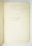 BILLIARD (Raymond) : La Vigne dans l'Antiquité. Précédé d'une introduction par M. Pierre Viala. Lyon, Lardanchet, 1913. Un volume. 20 par 30 cm. VIII-560 pages. Avec 16 planches hors-textes (complet), et 181 figures dans le texte. Broché, sous couverture illustrée rempliée. Exemplaire enrichi d'un envoi autographe. Un des exemplaires sur papier surglacé. Parfait état. Un classique recherché.