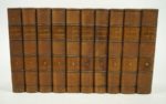 MALON (Benoit, sous la direction de) : La REVUE SOCIALISTE. Paris, Librairie de la "Revue Socialiste" [Rédaction et Administration, pour le vol. 1], [1885]-1895, 21 volumes. 15 par 23,5 cm. Chaque tome représente un semestre de la revue, qui paraissait deux fois par mois, et fait entre 600 et 800 pages. Demi-basane d'époque dos 4 nerfs bordeaux pour les 17 premiers volumes, noire pour les 4 derniers. Dos insolés pour les reliures bordeaux, menus défauts aux reliures (sans gravité). Quelques feuillets avec déchirure sans manque, rousseurs éparses, papier parfois légèrement roussi. Il n'y a pas de faux-titre ni de titre pour les vol. 2, 3 et 4, ceux-ci étant à pagination continue, dans la suite du tome 1. Tête de collection couvrant 10 ans de cette importante revue fondée en janvier 1885 par Benoît Malon, le théoricien du syndicalisme intégral. Elle parut jusqu'en 1914. Elle comprend toute la période pendant laquelle Benoît Malon fut le directeur de la Revue (1885-1893). Benoit MALON fut un ami d'Eugène VARLIN, adhérent à l'Association Internationale des Travailleurs. Durant la Commune, il organise la défense lors de la semaine sanglante. Exilé en Suisse, son socialisme devient plus réformiste, et sa pensée se teinte d'anarchisme. Revenu en France, devenu Franc-Maçon, il sera un théoricien du socialisme non marxiste. A l'affirmation de la lutte des classes, il ajoutait le culte du droit et de la justice, l'appel au sentiment de fraternité humaine universelle, qui inspirera JAURES. B.N., Cat. collectif des périodiques IV-p. 344. Rare ensemble de ces 10 premières années, aux contenus d'une immense richesse, la revue se voulant ouverte à toute la culture humaine (philosophie, politique, économie, actualités internationales, littérature, etc.) et à toutes les composantes du socialisme.