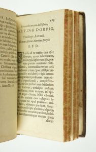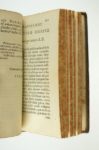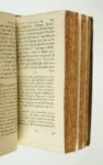 [ERASME] : Des. Erasmi Rot. Moriae encomium, cum Gerardi listrii commentariis. Epistole aliquot in fine additae. Lugduni Batavorum (Lyon) Ex Officina Ioannis MAIRE, 1648. Un volume. 6,5 par 12 cm. 528 pages. Plein veau d'époque, dos 4 nerfs, caissons ornés, roulette sur coupes. Très légère trace de mouillure sur le 2ème plat, un coin légèrement usé, sinon très bon état de la reliure. Mouillure claire sur la moitié du volume, en marge, discrète, sinon bon état intérieur. Texte en latin, avec citations en grec et en hébreu. Seconde édition de l'Éloge de la Folie d'Érasme par Joannis Maire comprenant le commentaire du médecin et philologue Gérard Listrius. Cette édition de petit format était destinée à une large diffusion du texte le plus célèbre d'Érasme. Afin d'éclairer le lecteur sur les termes parfois hermétiques qui y sont employés ainsi que les passages en grec de ce texte, Maire a repris les explications données par Gérard Listrius Rhenensis, un disciple d'Érasme lui-même. Le volume se clôt sur deux lettres d'Érasme envoyées respectivement à Martino Dorpio (Maarten van Dorp) et à Thomas More.