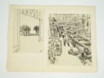 BERLIET] : BROUTY (Charles) (1897-1984) : 7 Croquis pris sur le vif lors de la Mission TENERE faite par BERLIET. 7 croquis à l'encre : Seguedine (palmiers verts femme rouge) 16 par 24 cm. Taché dans un angle. Agadez 30 par 22,5 cm. Manque de papier dans un coin, bords effrangés. Un mauvais passage dans les dunes de Bilma 15,5 par 24 cm Dans les dunes de Bilma 24 par 15 cm Dans les dunes de Bilma (autre croquis) 24 par 15 cm Loth et les gazelles 12 par 17,5 cm (rehaussé aux crayons de couleurs) Kanouri de Bilma. 14 par 22 cm. Scotch ancien collé au dos et ayant marqué le papier. Chaque croquis porte son titre, et la signature de BROUTY. La mission Berliet-Ténéré de 1959-1960 fut une expédition à travers le Sahara, organisée par le constructeur de camion Berliet afin de démontrer la capacité de ses engins à parcourir de vastes espaces déserts et « sauvages ». Elle fut le support d'une expédition géographique et scientifique. La traversée du Grand Erg de Bilma fut un défi particulièrement difficile, et réussi Un document rare sur la Mission TENERE. On joint : BERLIET] : BROUTY (Charles) (1897-1984) : Croquis sur l'usine de Rouïba de BERLIET. Circa 1960. 12 Feuilles de 25 par 32,5 cm, format à l'italienne, sous une couverture illustrée au crayon. Chaque feuille contient de 1 à 3 dessins à l'encre. Au total, 19 dessins originaux à la plume, présentant l'usine que BERLIET vient de construire en Algérie, dans la banlieue d'Alger, à Rouïba. Mauvais état de la couverture, sinon bon état pour les croquis. C'est vraisemblablement la maquette d'un projet de brochure de présentation de l'usine BERLIET, car BROUTY a indiqué parfois la place du texte par un crayonné. Tous les dessins sont sous des passe-partout grossièrement découpés. Est-ce une manière de définir la place de photos ? Nous n'avons pas trouvé trace de cette éventuelle plaquette de présentation Fin 1960, 5000 camions auront été fabriqués à Rouïba. Un document exceptionnel.
