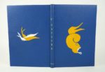 HOMÈRE : L'Odyssée. Chants V et VI. Paris, Creuzevault, 1952. Un volume. 21 par 31,5 cm. Plein maroquin bleu, dos lisse, titré à la chinoise, plats décorés de monstres marins mosaïqués, papiers de garde artisanaux tissés. Couvertures et dos conservés. Chemise en demi-chagrin citron à bande, étui bordé. Reliure signée FAGOT. Reliure en parfait état. Quelques rousseurs claires sur la page de titre et au verso de la page de faux-titre (sans gravité), sinon parfait état de l'ouvrage. Edition illustrée de 14 bois originaux d'HENRI LAURENS, dont 1 sur la couverture, 1 sur le titre, 1 à pleine page et 11 in-texte. Tirage à 150 exemplaires, celui-ci un des 25 exemplaires nominatifs sur vergé de Montval, signé par l'artiste. Très originale reliure, très en accord avec le texte.