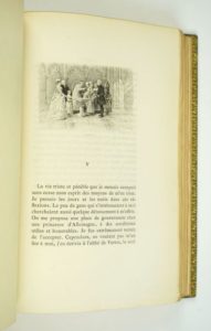 STAAL DE LAUNAY (Marguerite Jeanne Cordier, baronne de) : Mémoires de Madame de Staal (Mademoiselle Delaunay). Un portrait et trente compositions de C. Delort gravés au burin et à l'eau-forte par L. Boisson. Paris, Conquet, 1891. Un volume. 15 par 22,5 cm. (4)-XXVIII-391 pages. Plein maroquin bleu, dos 5 nerfs, caissons très joliment ornés, triple encadrement des plats, double filet sur coupes, riche encadrement intérieur avec roulette, toutes tranches dorées, couvertures conservées. Reliure signée CHAMBOLLE-DURU. Exemplaire en parfait état. Exemplaire numéroté sur vélin du Marais (N°213), paraphé par l'éditeur, avec une suite des eaux-fortes sur papier japon. L'exemplaire comprend un portrait supplémentaire sur japon relié en tête d'ouvrage. Pour collectionneur.