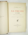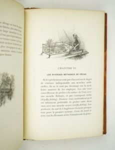 PETIT (G.-Albert) : La Truite de Rivière. Pêche à la Mouche artificielle. Paris, Delagrave, 1897. Un volume. 14 par 21,5 cm. XII-439 pages. Demi-basane postérieure, dos 4 nerfs, couvertures illustrées conservées. Reliure modeste, dos légèrement frotté. Couverture conservée assombrie et très légèrement tachée. Deux déchirures en marge haute, restaurées anciennement. Les pages de l'introduction (pagination en chiffres romains) ont été reliées dans le désordre. Mais le livre est complet. Sinon, très bon état. Texte richement illustré de 200 dessins in texte par Fraipont, Guydo, Juillera et Richard. Édition originale d'un des plus grands textes de la littérature halieutique.