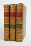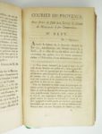 MIRABEAU (Honoré-Gabriel Riquetti, Comte de) : [Première - dix-neuvième] lettres du comte de Mirabeau à ses commettants. [Du 10 mai au 24 juillet 1789]. [Puis] Courier de Provence. Pour servir de suite aux Lettres du Comte de Mirabeau à ses commettans. [Du n° XX du 24 au 27 juillet 1789 au n° LVIII des 26-27 octobre 1789]. S.l.n.d. [1789]. 58 numéros en 3 volumes. 11,5 par 18,5 cm. 58 numéros à pagination distincte. Pleine basane racinée de l'époque, dos lisses ornés, pièce de titre rouge, de tomaison verte. Encadrement des plats par une roulette dorée, filet sur coupe, tranches marbrées. Un dos et les charnières anciennement restaurés. Manque de papier (défaut) sur 1 f. de la 14e lettre, ayant entraîné la perte de 4 mots environ sur 3 lignes ; 4 ff. de la 14e lettre reliés par erreur dans la lettre suivante ; petite restauration avec du papier ancien dans la marge ext. de 1 f. du n° 36 du Courier de Provence, sans atteinte du texte. Enfin, il manque 2 ff. au n° 25 du Courier de Provence (pp. 21 à 24). Malgré tous ces défauts, un exemplaire très convenable. Hatin, p. 122 ; Tourneux 10207 ; Martin et Walter 887 et 305. Tête de collection de ce célèbre périodique, qui parut du 20 mai 1789 au 30 septembre 1791. Les collections complètes comportent 350 numéros. L'arrêt du 7 mai 1789 ayant suspendu la publication de son journal, États généraux, après le deuxième numéro, Mirabeau "protesta hautement contre ce qu'il appelait un scandale public, et promit de continuer son journal, ce qu'il fit en effet : mais, comme pour se couvrir du manteau de l'inviolabilité parlementaire, il l'intitula Lettres du comte de Mirabeau à ses commettants. Titre qu'il abandonna au n° 20 pour [celui de Courrier de Provence, pour faire suite aux lettres], sous lequel cette feuille, justement célèbre, est demeurée connue." (Hatin).