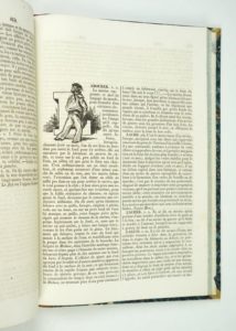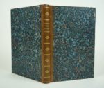LECOMTE (Jules) : Dictionnaire pittoresque de marine. Paris, Bureau Central de la France Maritime, 1835. Un volume. 18 par 27 cm. 1 titre frontispice-VIII-326-(1) pages. Demi-basane marron de l'époque, dos lisse orné. Très bon état de la reliure (légères usures aux coupes). Petite mouillure très claire en marge haute du dernier tiers des feuillets. Exemplaire quasiment épargné par les rousseurs, ce qui est rare. Edition originale. Polak 5544. "Ce dictionnaire ne comporte pas la monotonie d'un lexique ; il révèle les beautés et la richesse de la langue et des marins." (Polak). "Lecomte (Jules), littérateur français, né à Boulogne-sur-Mer, le 20 juin 1814, et fils d'un officier supérieur de marine, entra de bonne heure dans la navigation. Après six années de voyages au long cours, il était parvenu au grade de lieutenant lorsqu'il abandonna la marine pour les lettres. Il vint à Paris, s'y consacra exclusivement à la littérature maritime alors en vogue et débuta par un traité intitulé : Pratique de la pêche de la baleine dans les mers du Sud (1833, in-8) ; et la Relation d'un naufrage sur la côte d'Afrique (1833, in-8). Il fonda le Navigateur (1834), recueil mensuel, puis la Revue maritime, et concourut, comme rédacteur en chef, aux trois premiers volumes de la France maritime (1837-1840), publication hebdomadaire illustrée, où il donna un grand nombre d'articles." (Vapereau, Dict. ces contemporains (éd. de 1861), p. 1054).