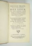 Ensemble de deux ouvrages XVIIIe sur l'ophtalmologie JANIN (Jean) : Mémoires et observations anatomiques, physiologiques et physiques sur l'oeil, et sur les maladies qui affectent cet organe ; avec un précis des opérations & des remèdes qu'on doit pratiquer pour les guérir. Lyon, Frères Perisse ; Paris, P.F. Didot le Jeune, 1772. Un volume. 12 par 19,5 cm. XL-474-(5) pages. Pleine basane mouchetée d'époque, large dentelle dorée encadrant les plats, dos 5 nerfs, caissons ornés, roulette sur coupes, roulette intérieure, toutes tranches dorées. Edition sur papier fort. 1 vignette. Bel état de la reliure (coins légèrement usés), quelques rousseurs intérieures sans gravité. Edition originale. Ici sans doute un exemplaire de tête. Waller 5116 ; Wellcome III-345 ; Bernard Becker collection in ophtalmology 208 ; Conlon 72 : 879. "Précieux recueil de mémoires qui montre qu'il a été à la fois un chirurgien habile et un observateur attentif. Selon Hirsch (III-418) ce livre contient un récit des premières expériences avec des verres de couleurs complémentaires devant les deux yeux. Dans la dernière section (pp. 429-432), Janin donne le premier récit publié de l'hypermétropie. Janin a pratiqué une opération de la cataracte sur le duc de Modène qui l'a ensuite anobli sous le nom de Combe-Blanche." (Becker collection). SAINT-YVES (Charles) : Nouveau traité des maladies des yeux. Où l'on expose leur structure, leur usage, les causes de leurs maladies, leurs symptômes, les remèdes & les opérations de chirurgie qui conviennent le plus à leur guérison. Avec de nouvelles découvertes sur la structure de l'oeil, qui prouvent l'organe immédiat de la vue. Nouvelle édition. Augmentée de l'Histoire d'un remède pour les maux des yeux, & contre la morsure du chien enragé. Traduit de l'anglois par M. Cantwel. Amsterdam et Leipzik, Arkstée & Merkus, 1767. Avec : SLOANE (Hans, chevalier) : Histoire d'un remède très efficace pour la foiblesse et rougeur des yeux et aulres [sic] maladies du même organe. Avec un remède infaillible contre la morsure du chien enragé. Par le Chevalier Hans Sloane. Traduits de l'anglois & enrichi de notes par M. Cantwel. Amsterdam et Leipzik, Arkstée & Merkus, 1767. Deux ouvrages dans un volume. 9,5 par 16,5 cm. XXXVI-(12)-309 ; 30 pages. Pleine basane de l'époque, dos 5 nerfs orné, pièce de titre rouge. Très bon état de la reliure, très bon état intérieur (papier du 2nd texte légèrement assombri). L'édition originale est de 1722. Garrison-Morton 5827 (éd. de 1722) ; Blake p. 398. "Les maladies oculaires [y] sont souvent parfaitement décrites, entre autres les premiers signes d'alarme du glaucome chronique suivi de baisse de la vue et d'un rétrecissement du champ visuel. Mais Saint-Yves ne le rattache pas à l'hypertension oculaire." (Hist. de la médecine IV-p. 35).