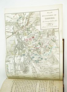 SCHOELL (Friedrich) : Recueil de pièces officielles destinées à détromper les François sur les événemens qui se sont passés depuis quelques années. Paris, Chez l'Editeur (vol. 1, 2 et 3) ; Librairie Grecque-Latine-Allemande (vol. 4 à 9), 1814-1816. 9 volumes. 12 par 19,2 cm. Demi-basane de l'époque, dos lisse ornés, pièces de titre et de tomaison noires. Reliure avec des défauts (5 coiffes abimées, le dos du tome 9 avec accident, un mors fendu sur 4 cm. Rousseurs éparses. Orné d'un portrait et deux cartes dépliantes en couleurs au tome 3. Edition originale. Rare complet des neuf volumes. "Ce livre qui révélait en effet au peuple français quantité de faits notoires pour tout le reste de l'Europe, mais que la police impériale avait jusque-là tenus secret, eut un retentissement considérable." (Encycl. Berhelot XXIX-p. 768). Affaire du Pape ; affaires d'Espagne ; campagnes de 1809, 1812, 1813, 1814 ; affaires de Hollande ; 1815 ; royaume de Naples ; congrès de Vienne ; traité de 1815.