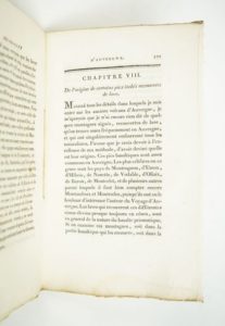 [MONTLOSIER (François-Dominique de Reynaud de)] : Essai sur la théorie des volcans d'Auvergne. Riom et Clermont, Landriot et Rousset, An X - 1802. Un volume. 13,5 par 21 cm. 184 pages. Broché, sous couverture imprimée, non coupé, non rogné. Petite coupure sur le second plat, couvertures légèrement poussiéreuses, sinon très bel état. Seconde édition après celle publiée en 1789, ici telle que parue à l'époque.