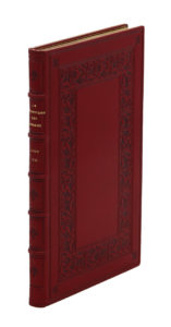 Lyon, Romain Morin, 1533. Petit in-8, maroquin rouge, large frise de rinceaux à froid sertie d'un triple encadrement de filets avec petits fleurons aldins aux angles, dos orné de fleurons à froid, dentelle intérieure dorée, tranches dorées (Chambolle-Duru).Très jolie et rare édition lyonnaise, publiée par Romain Morin en 1532 et remise en vente l'année suivante sous un titre rajeuni.