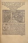 L'ouvrage, imprimé en petites lettres rondes, a le titre tiré en rouge et noir dans un encadrement xylographique de motifs floraux, avec un bois au centre montrant l’auteur présentant son livre à un prélat (bois qui fut utilisé par Romain Morin pour son édition des Mots dorez de Sénèque parue en 1530).