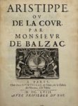 BALZAC (Jean-Louis Guez de) — Aristippe, ou de la Cour.