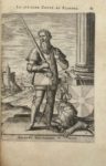 Superbe illustration gravée en taille-douce composée de 45 planches à pleine page, dont un titre-frontispice architectural avec, au verso, les armoiries d'Isabelle et Albert d'Autriche, une planche en deux parties présentant les armes et une carte du comté de Flandre, 41 portraits en pied des forestiers et comtes de Flandre, dont la dernière est signée de Jan Collaert d'après Otto Vaenius, et enfin une planche allégorique comportant dans la partie inférieure un poème en français de Charles de Navières.