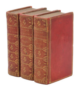 Amsterdam et Leipzig, Arkstée & Merkus, 1765. 6 tomes en 3 volumes petit in-12, maroquin rouge, triple filet doré, dos lisse orné, dentelle intérieure, tranches dorées (Reliure de l'époque).Jolie édition hollandaise du théâtre de Molière, augmentée de la vie de l'auteur et des remarques de Voltaire.