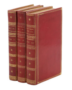 Amsterdam, François Changuion, 1728. 3 volumes in-12, maroquin rouge, triple filet doré, dos lisse orné, dentelle intérieure, tranches dorées (Derome le Jeune).Nouvelle édition revue, corrigée et augmentée par l'auteur.