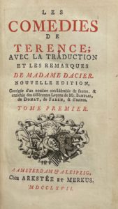 TÉRENCE — Les Comédies, avec la traduction et les remarques de Madame Dacier.