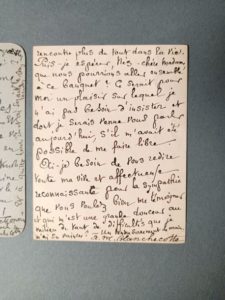 BLANCHECOTTE Malvina [, 1830 - , 1897], poétesse française. Ensemble de 3 lettres autographes signées : — « Pic de la solitude, 11 rue de Cujas », lundi 5 décembre 1887 ; 2 pages in-12°. Invite sa chère amie au « grand baquet du centenaire » afin de refaire connaissance avec certains confrères. — « 11 rue de Cujas », 29 novembre 1889 ; 2 pages in-12°. Elle a de plus en plus de problèmes avec ses yeux et a du mal à se déplacer pour venir voir sa bonne amie. — « 11 rue de Cujas », 19 mai 1871 ; 2 pages in-12°. Demande des nouvelles de son amie, car elle ne peut plus bouger.