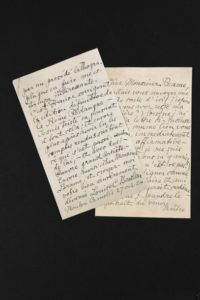 BRESLAU Louise Catherine [, 1856 - , 1928], peintre, lithographe et pastelliste. 2 lettres autographes signées, adressées à Hector Brame. Carnolès [près de Menton], 20 octobre et 27 octobre 1924 : 4 pages in-8° chacune. Au sujet de son portrait d'Anatole France qui doit être exposé à la Comédie Française [l'écrivain est décédé le 12 octobre précédent]. — Elle charge Brame de le remettre en mains propres au bibliothécaire de la Comédie-Française, M. Jules Couët. « Puis-je encore vous demander de surveiller le placement du précieux portrait ? On ne sait jamais ce qui arrive lorsqu'on n'est pas là pour juger ! Ce n'est pas la peine de le mettre là s'il ne doit pas être en bonne place ! Est-ce que les objets de cette exposition sont assurés ? Car les théâtres sont exposés à brûler, - et j'avoue que cela m'inquiète un peu ». [Ce pastel est aujourd'hui conservé au château de Versailles]. Elle le remercie de s'être chargé, avec son fils Paul, de cette commission. « Jeanne, la gardienne du 'sanctuaire' m'écrit aujourd'hui que Monsieur Paul avait demandé de prendre aussi le croquis de A. France qui se trouve dans le salon. Je n'ai pas pu comprendre s'il l'a pris si c'est seulement une demande. En tous les cas, je suis toute consentante, mais je ne vois pas trop ce que ce petit dessin pourrait faire au foyer de la Comédie où il disparaîtrait au point de vue effet et où on pourrait l'égarer. Si c'est pour le montrer chez vous, cela est autre chose ». Elle songe à faire une estampe de ce dessin représentant Anatole France, corrigeant l'édition définitive de La Rôtisserie de la reine Pédauque. Elle se dit attristée de tout ce qui s'est écrit et qui s'est dit autour de ce « pauvre grand artiste ».