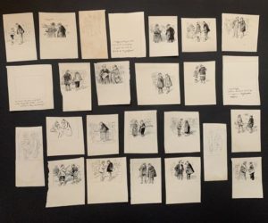 HENRIOT (1857-1933) Ensemble de projets d'illustrations diverses d'HENRIOT. Plume sur papier. Provenance : Atelier de l'artiste. Conservé à ce jour dans la famille de l'artiste.