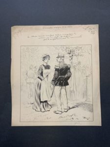 HENRIOT (1857-1933) Deux illustrations : « Promenades artistiques des militaires ». L'une à la plume sur papier, signée, titrée avec légende. L'autre rehaussée à l'aquarelle, signée dans la planche. 28 x 25,5 cm - 30 x 25,5 cm Cachet de la vente HENRIOT au revers de la feuille. Provenance : Atelier de l'artiste. Conservé à ce jour dans la famille de l'artiste.