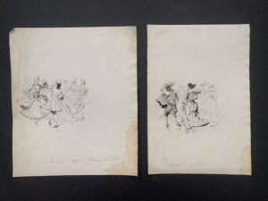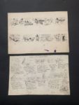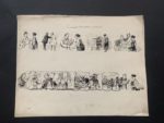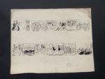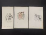 HENRIOT (1857-1933) Ensemble d'illustrations, à la plume ou aquarelle, certaines signées ou monogrammées. Plume sur papier. Dim. Min : 25 x 14 cm / Dim. max : 19 x 33 cm 25,5 x 17,5 cm - 25,5 x 17,5 cm - 25,5 x 17,5 cm - 25,5 x 22 cm Traces de mouillures, pliures et tâches. Cachet de la vente HENRIOT au revers de la feuille. Provenance : Atelier de l'artiste. Conservé à ce jour dans la famille de l'artiste.