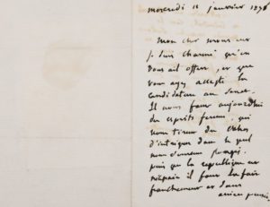 THIERS Adolphe [Marseille, 1797 - Saint-Germain-en-Laye, 1877], homme politique et historien français, président de la République. Lettre autographe signée, adressée à M. Chaigner, professeur de la Faculté de lettres. 11 janvier 1876 ; 2 pages in-12, enveloppe timbrée jointe. Il le félicite d'avoir accepté la candidature au Sénat.