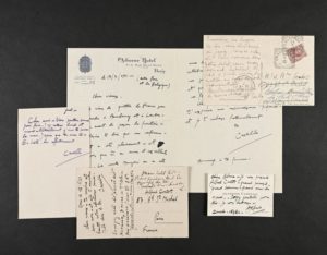 CASELLA Alfredo [, 1883 - , 1947], compositeur italien. Belle correspondance de 4 cartes et 1 lettre autographe signée, adressées à M. Cortot. — 3 cartes postales écrites depuis l'Italie adressées à M. Cortot et 1 petite carte de visite adressée à une amie « Alma » pour présenter Alfred Cortot - Grand pianiste - Grand homme - Grand ami à moi ». — LAS adressée à Cortot. Paris, 19 février 1931 ; 2 pages in-8° sur papier à en-tête de l'Hôtel Osborne. « Cher Vieux, je viens de quitter la France pour me rendre à Hambourg et à Londres. Mais - avant … »