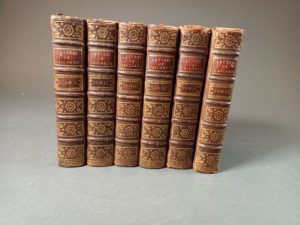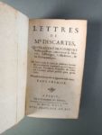 DESCARTES, René - Lettres qui traitent de plusieurs belles questions concernant la Morale, la Physique, la Médecine, & les Mathématiques. Paris, Compagnie des Libraires, 1724-1725. 6 vol. in-12, 29 pl. dépl., galerie de vers affectant les planches du tome VI, veau brun de l'ép., dos à nerfs orné, qqs. accrocs aux coiffes. Réédition des lettres publiées par Clerselier de 1657 à 1667.