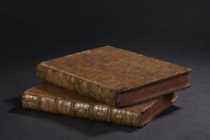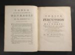 MARIOTTE, Edme - OEuvres. Comprenant tous les traitez de cet auteur, tant ceux qui avait déjà paru séparément, que ceux qui n'avoient pas encore été publiés. Nouvelle éd. Paris, Charles-Antoine Jombert, 1740. 2 vol. in-4, (5) ff., 320 pp. ; (2) ff., p. 321 à 701, (17) ff., 26 pl. h. t. dépl., veau fauve marbr. de l'ép., dos à nerfs orné, deux coiffes arasées, deux coins émoussés. Contient le "Traité de la percussion ou choc des corps", les "Essais de physique" (végétation des plantes, air, chaud et froid, traité des couleurs), "Mouvement des eaux, optique, mouvement des pendules, logique" etc. In fine : catalogue de l'éditeur (2 pp.).